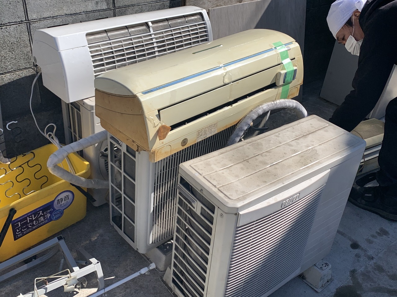 買い替え時の古いエアコンの取り外しはできる限り日程を合わせて対応できるよう頑張っています。